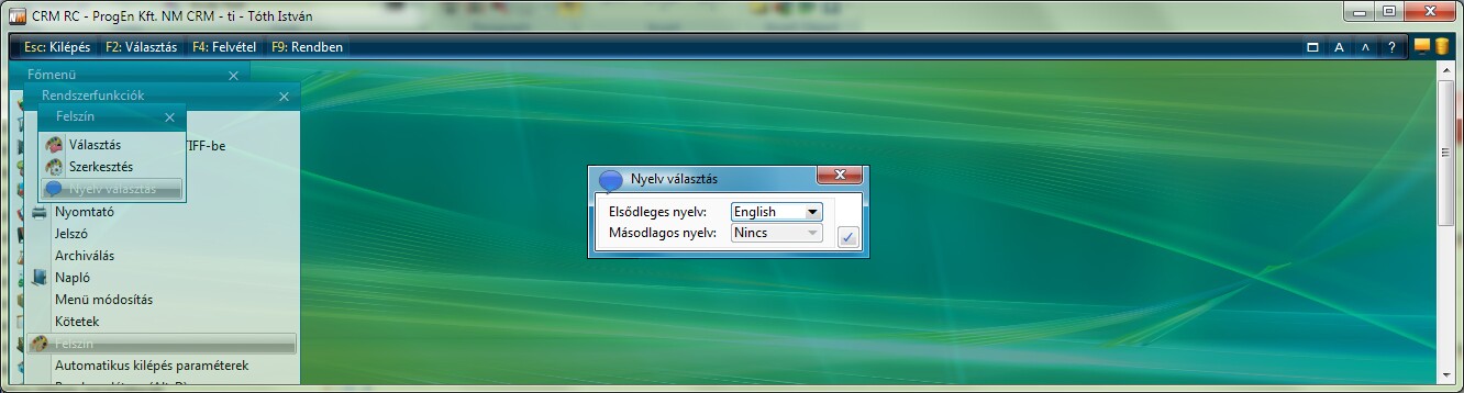 Ez azt jelenti, hogy a programban a fordítási lehetőség áll rendelkezésre és a felhasználónak kell lefordítani az egyes beviteli képernyőket. (Nem teljes körű, részleges fordítás elérhető angol nyelvre.)