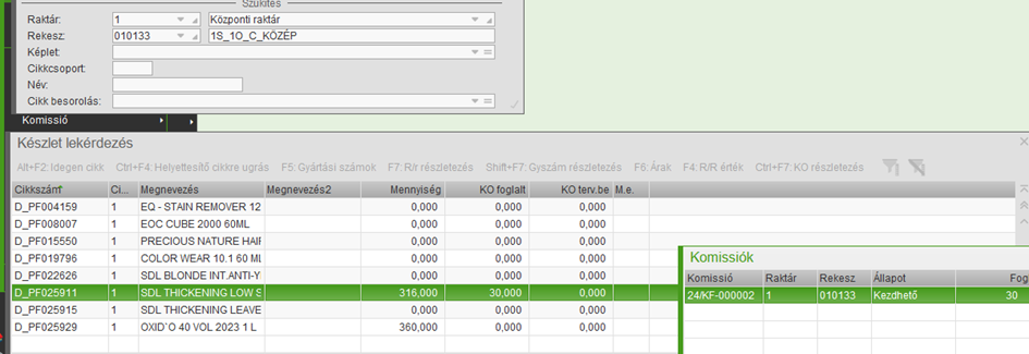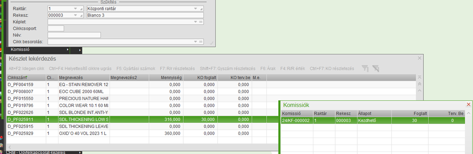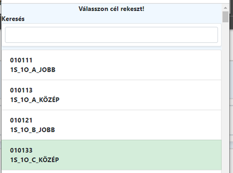 - továbbá a funkció arról is gondoskodik, hogy a forrás rekeszen található fizikai foglalásokat (komissió utasításokat) és átteszi a cél rekeszre vonatkozóan. (Kapcsolódó információ: Fizikai foglalások lekérdezése )