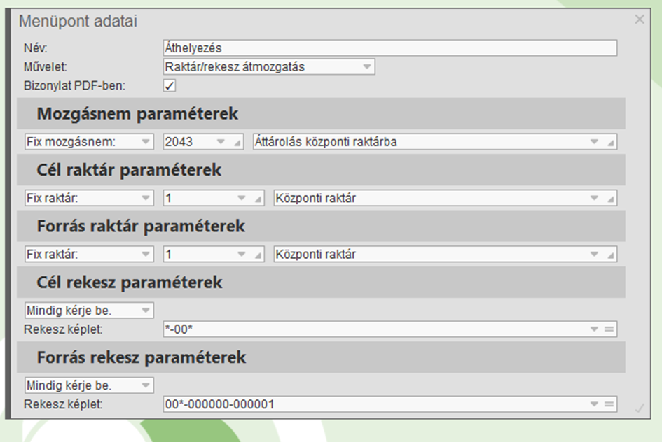 - egy kiválasztott rekesz komplett készletét egy lépésben tudja áttárolni egy másik rekeszbe. (Kapcsolódó információ: Raktárstruktúra kialakítása)