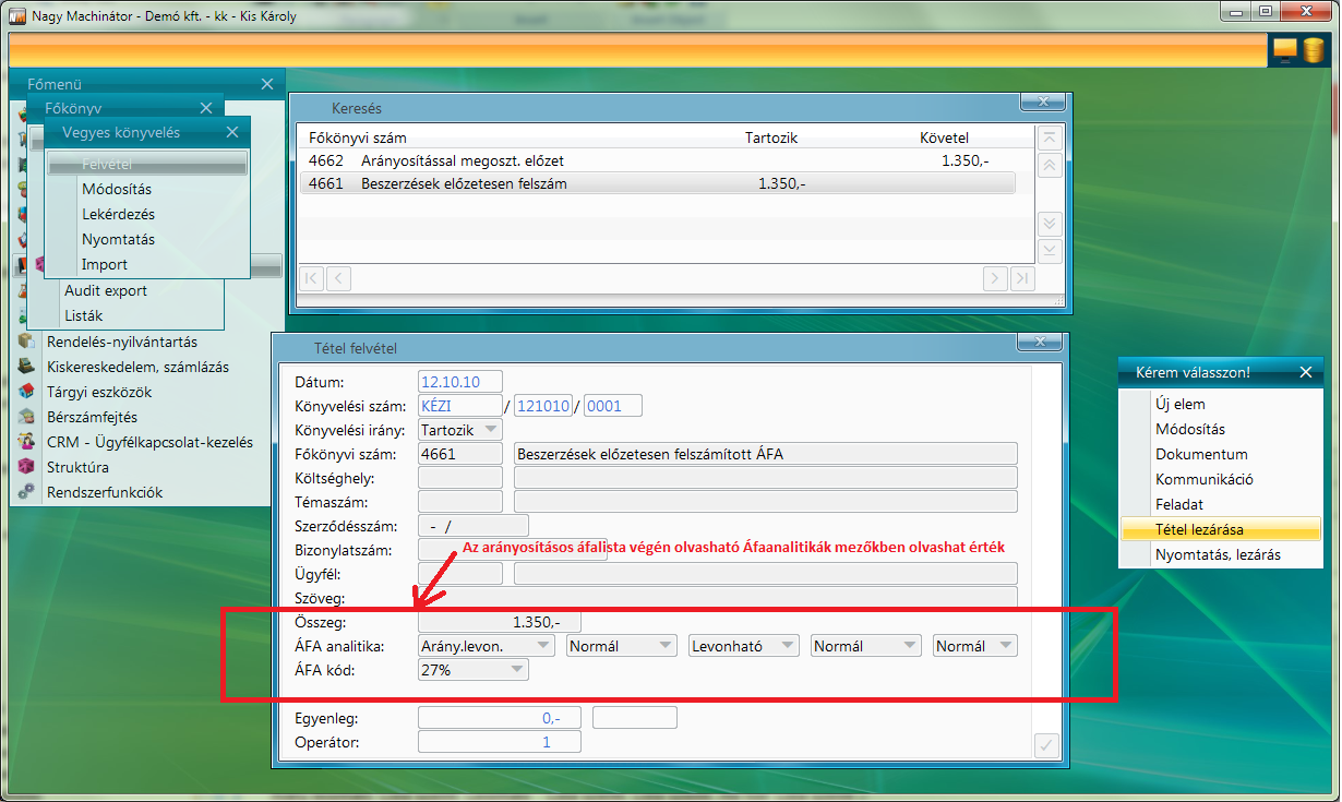 Annyi tételt kell rögzíteni ahány Áfaanalitika sor volt az Áfalista végén.