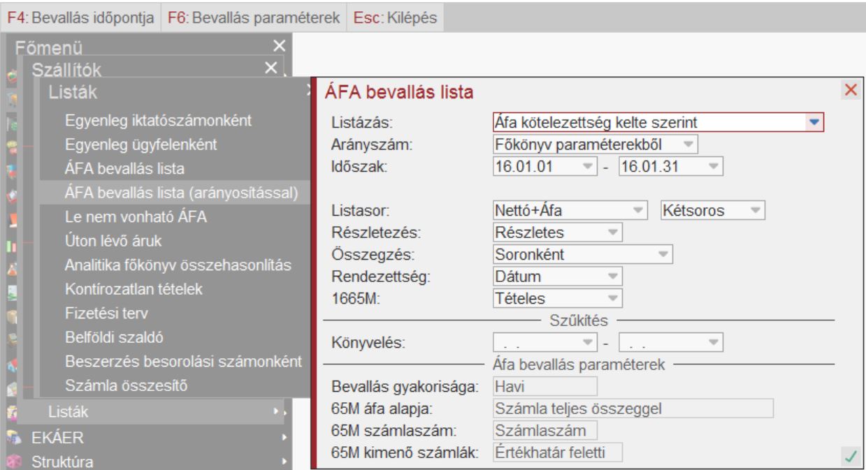 A lista után külön kérésre elkészül a 65M nyomtatvány is, amelybe az érintett számlák teljes áfa értéke kerül bele a vonatkozó szabályok miatt.