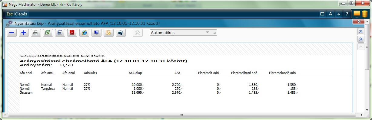 Példa: Arány.levonható; Normál; Levonható.; Normál; Normál; 27% (lásd kép)