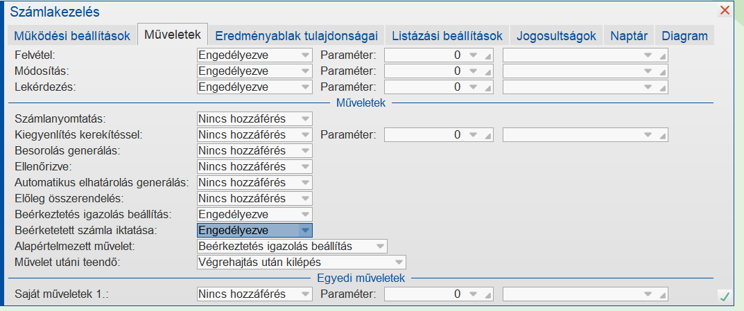 Ehhez a számla-kezelésben aktiválni kell a Beérkeztetett számla iktatás műveletet.