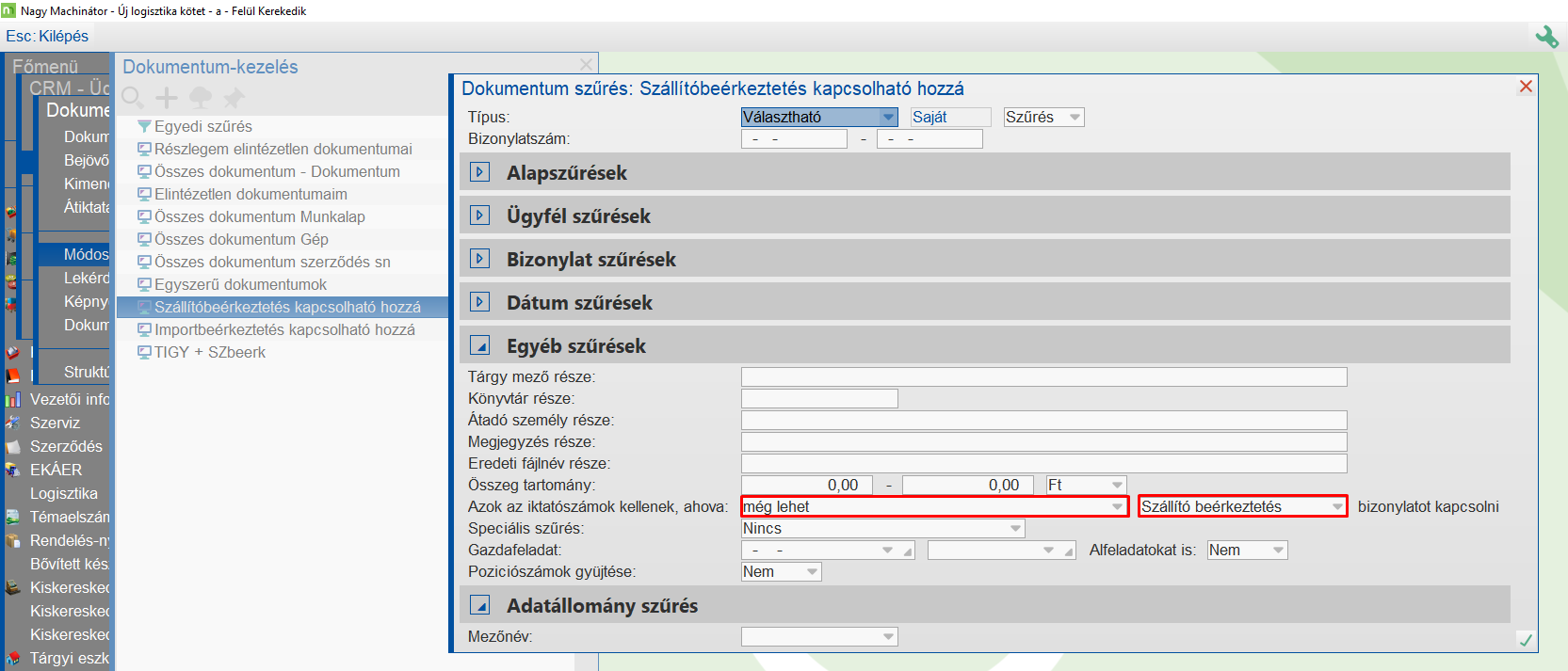 -Szállítóbeérkeztetés gyűjtőbe kerüljön a dokumentum és