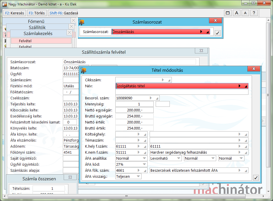 A programmal belföldi és közösségen belüli áfatartalmú önszámla is kiállítható.