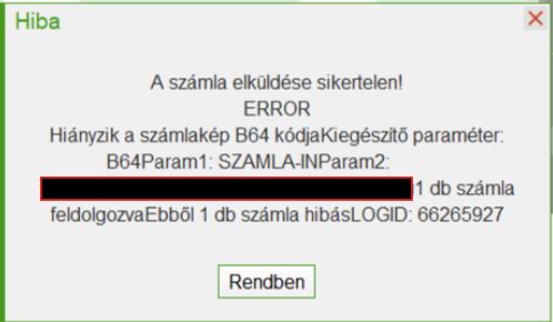 Abban az esetben ha nem sikerült elküldeni a szolgáltató felé a számlát az alábbi üzenetet kapjuk:
