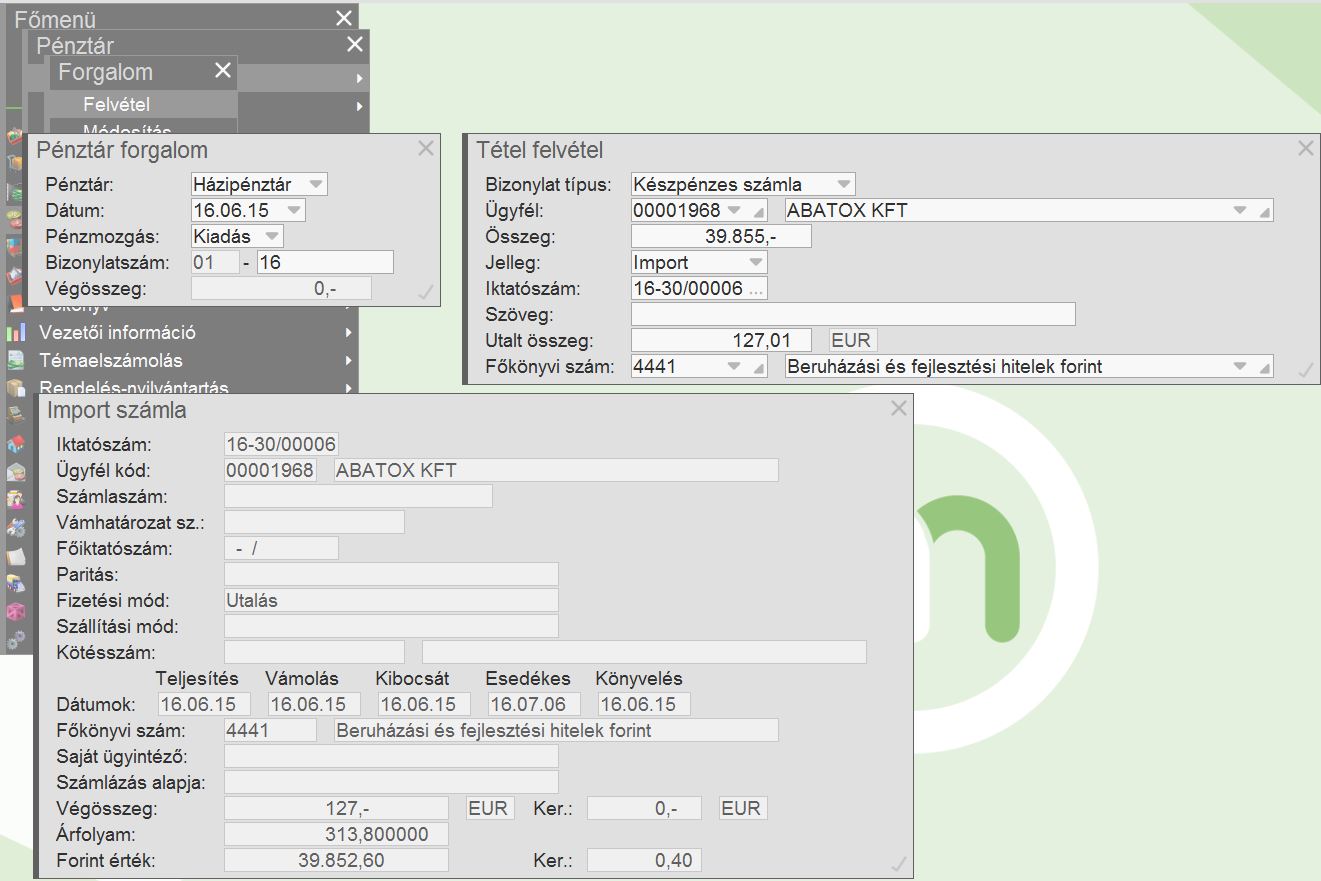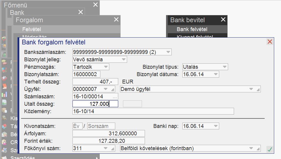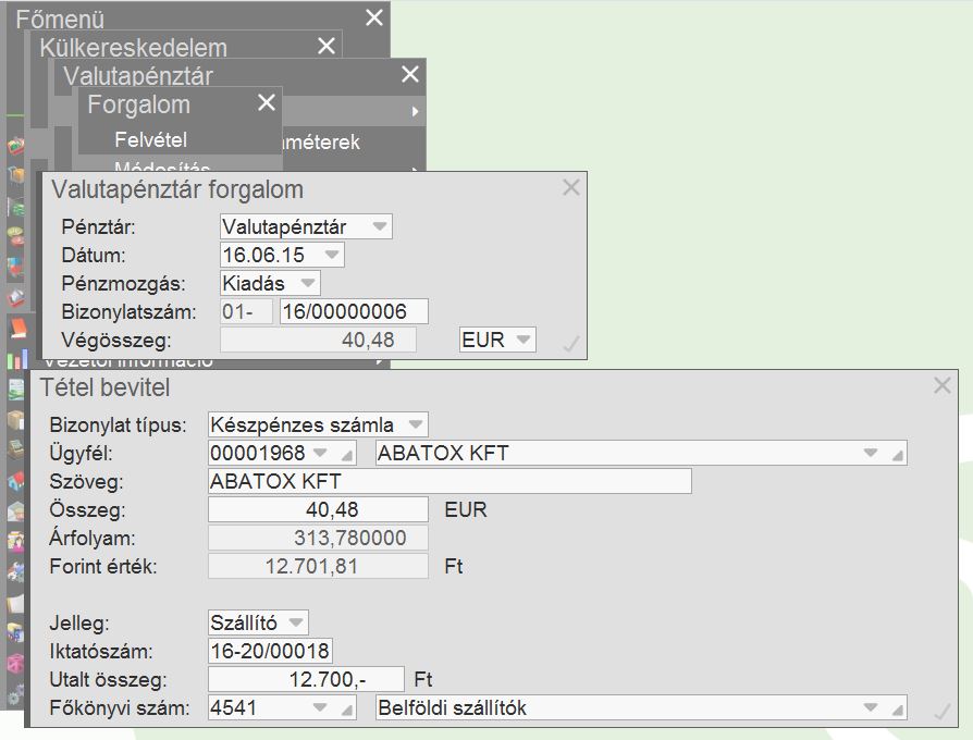 Előfordulhat, hogy más devizájú bankból vagy pénztárból kell egy számlát kiegyenlíteni, mint ami a számla devizaneme. Ebben az esetben a bank-, ill. pénztártétel megfelelő mezőit körültekintéssel kell használnunk.