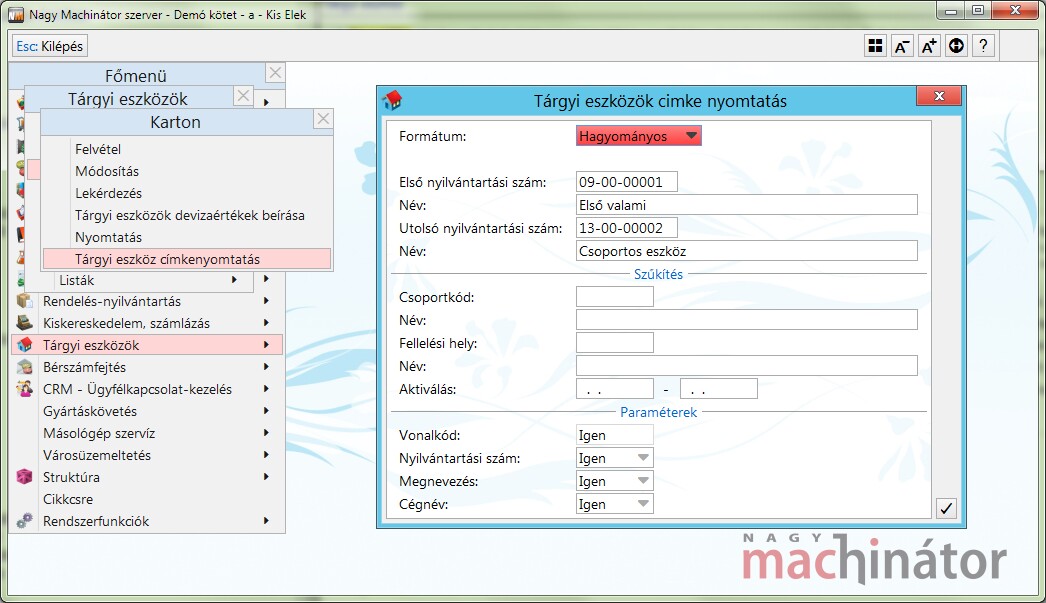 Navigáció: Tárgyi eszköz Címke nyomtatás - tárgyi eszközök [TK_LABEL] |