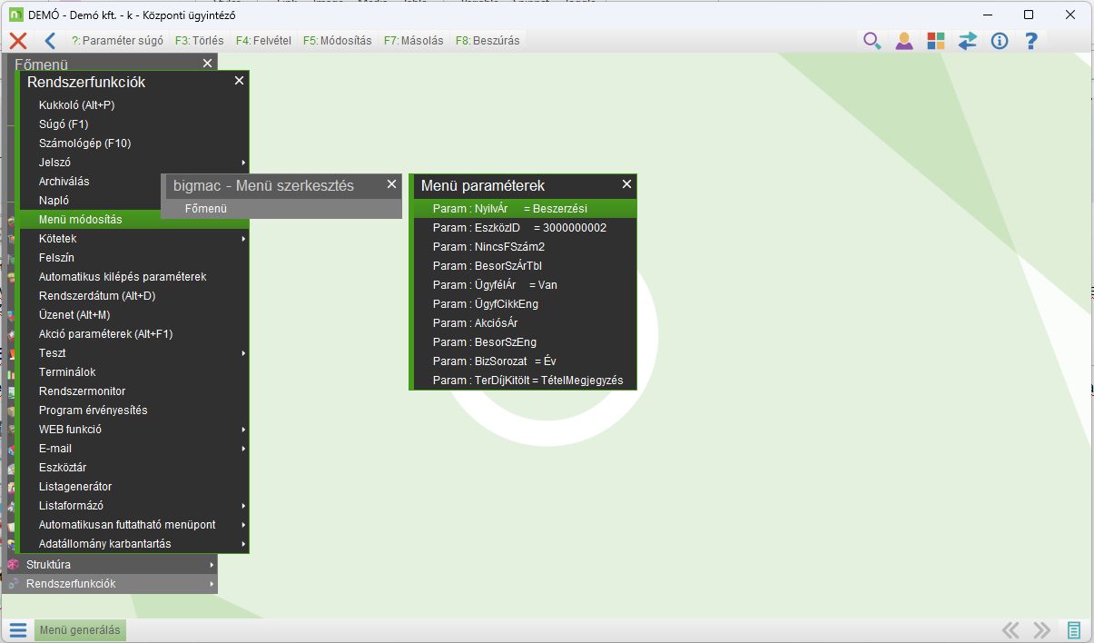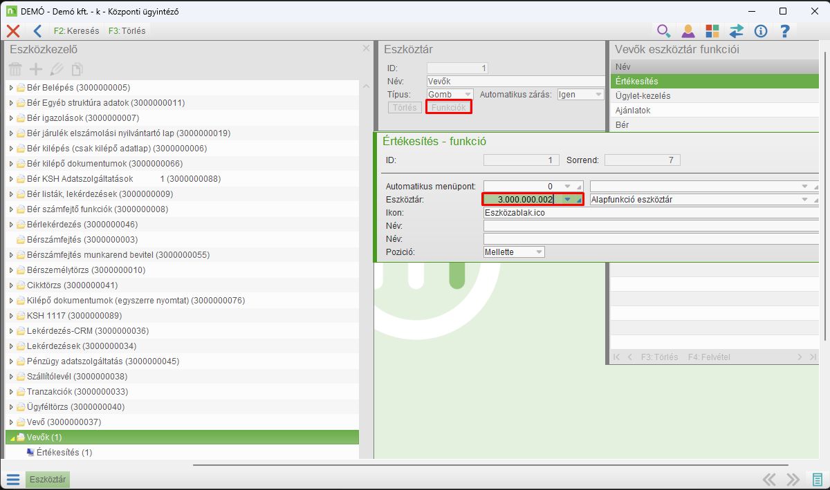 Tipp: Azt is meg lehet valósítani, hogy egy menü több eszköztárat használjon, attól függően, hogy melyik funkciót indítottuk el a menün belül. Ehhez arra van szükség, hogy a menü szerkezetében a megfelelő helyre legyen beállítva az EszközID paraméter.