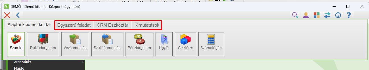 Amennyiben egy másik eszköztárat akarnak alkalmazni menümódosítással lehet az eszköztárat aktiválni.