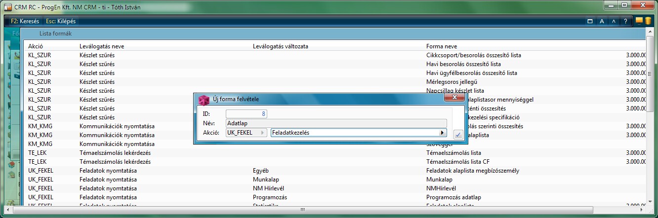 Egy feladatban állva F6:Nyomtatás funkció elindítása után lehet nyomtatni a folyamathoz tartozó formák közül.