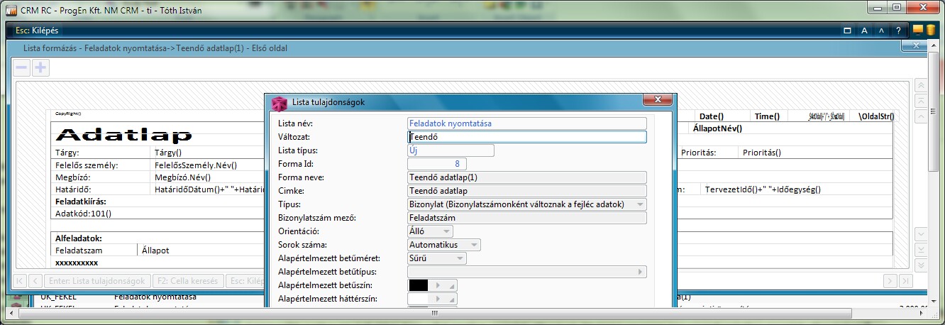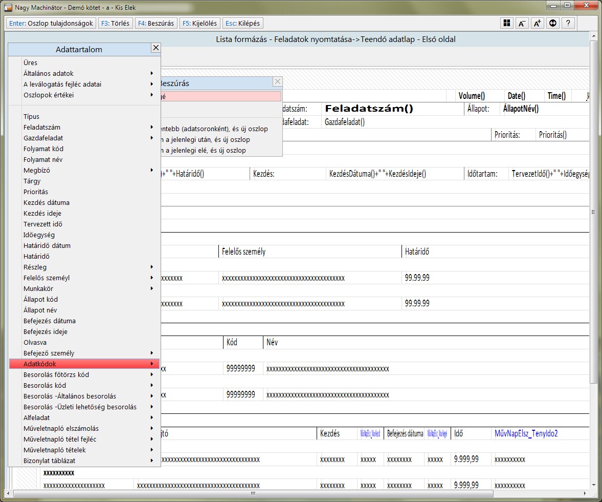 A listaformázóban szabadon definiálható nyomtatási képeket, bizonylatokat lehet létrehozni.