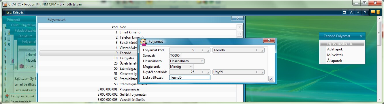 Pl.: Folyamatnév: Teendő, Állapot: Kész esetén a Változat mezőben Teendő Kész érték lesz.