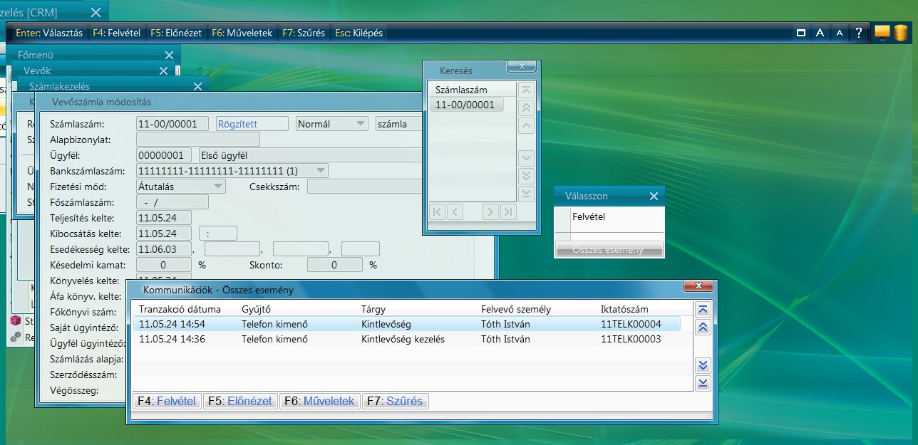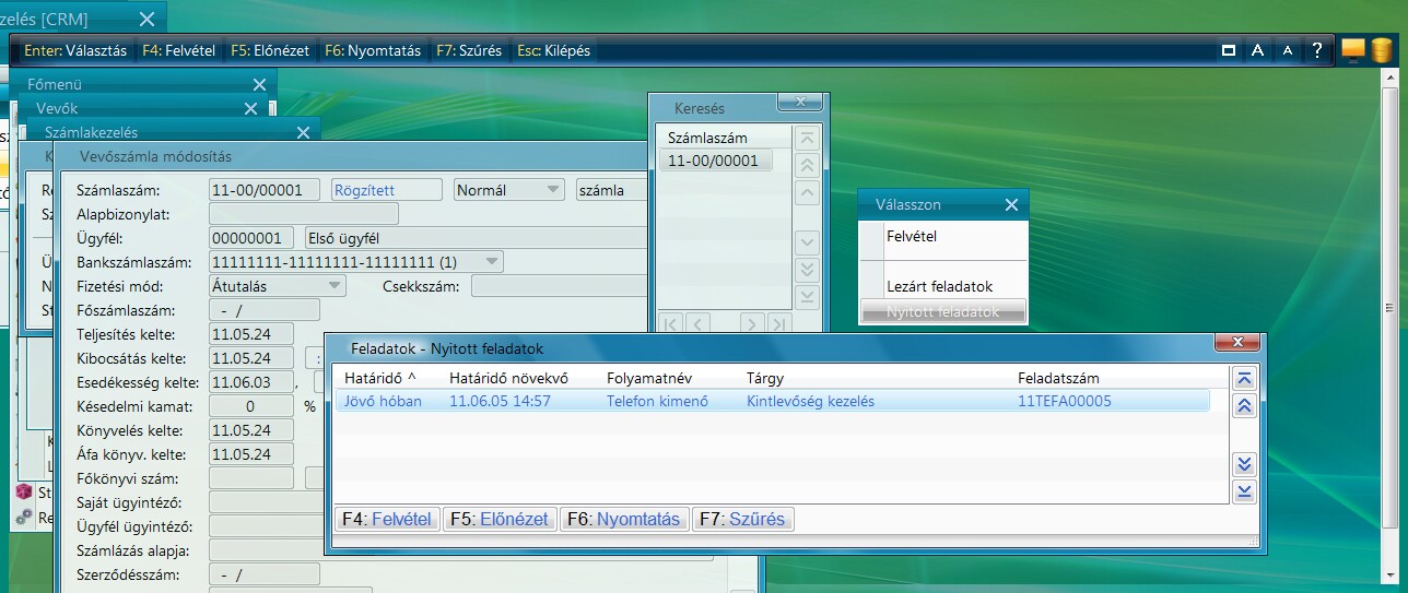 Ha a feladat szintén tartalmazza a felhívandó személyen kívül az érintett számlaszámot is, akkor mind az ügyféltörzsben, mind a vevőszámlák között lekérdezhetők lesznek a nyitott feladatok.