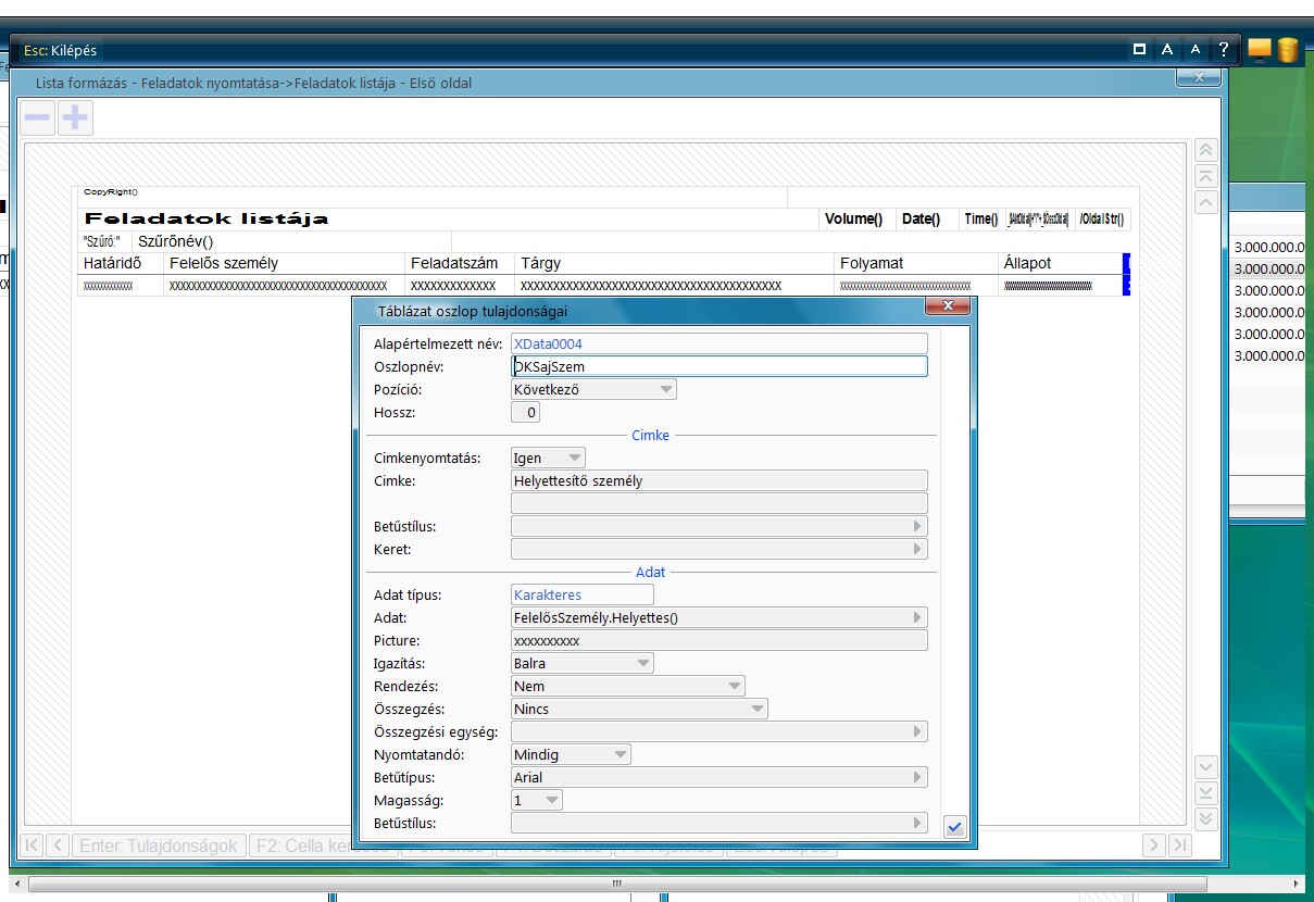 Tipp: Ha azt akarjuk, hogy helyettesítés esetén a Lejárt feladatról a helyettes legyen értesítve, akkor egy rejtett cellát lehet a listára felvenni és az Adat mezőben a Helyettes személyre kell hivatkozni (lásd fenti kép). (Rejtett attól lesz egy cella, ha a Hossz mezőben 0 az érték)