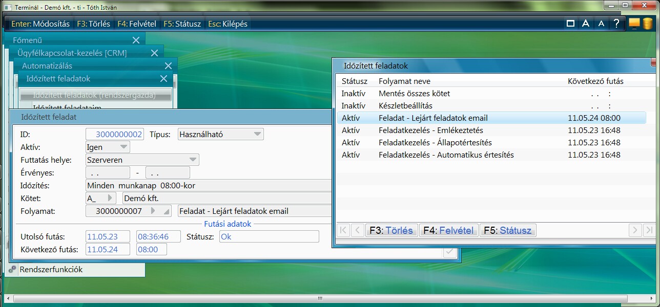 Az alábbi beállítást tartalmazza a feltelepített program, csak az az Időzített feladatot kell a felhasználónál beüzemelni.