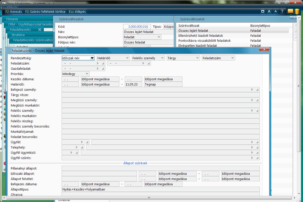 Először is a feladatkezelés modulban egy olyan szűrésváltozatot kell létrehozni, amely a tegnap lejárt feladatokat tartalmazza.