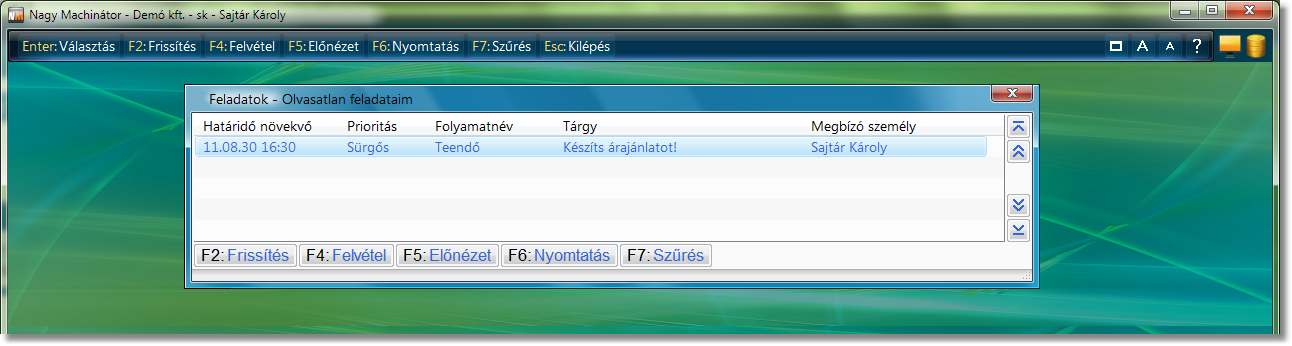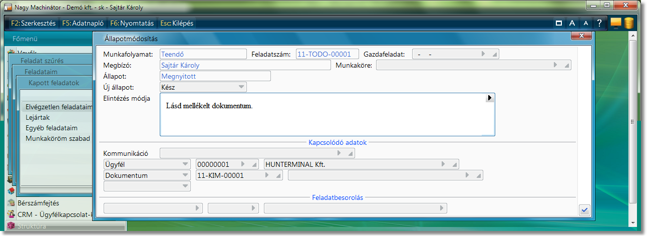 Végrehajtás alatt állapot esetén a Felelős személy azt jelzi, hogy már foglalkozott a feladattal.