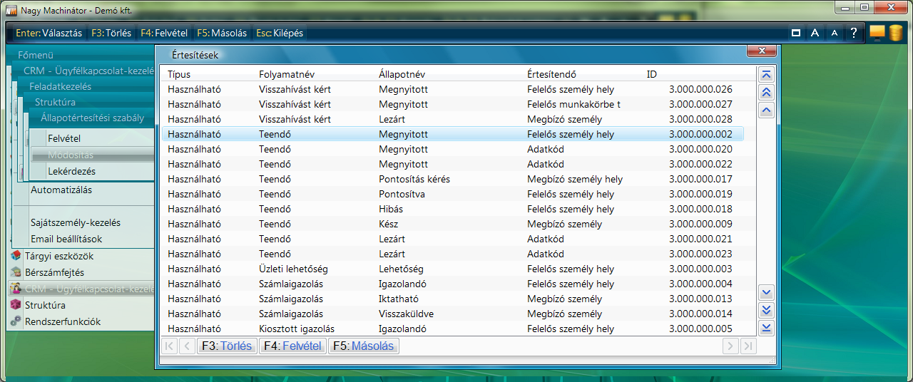 Ha egy olyan folyamatot használunk, amit a ProgEn Kft. központilag küldött, akkor az Értesítési szabályt nem lehet módosítani, ezért egyetlen lehetőség az Értesítési szabály lemásolása.