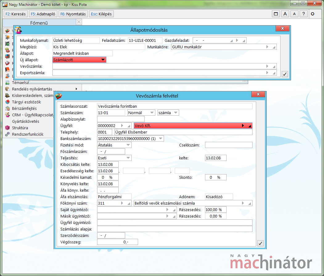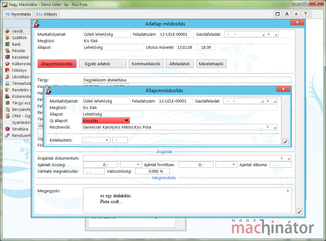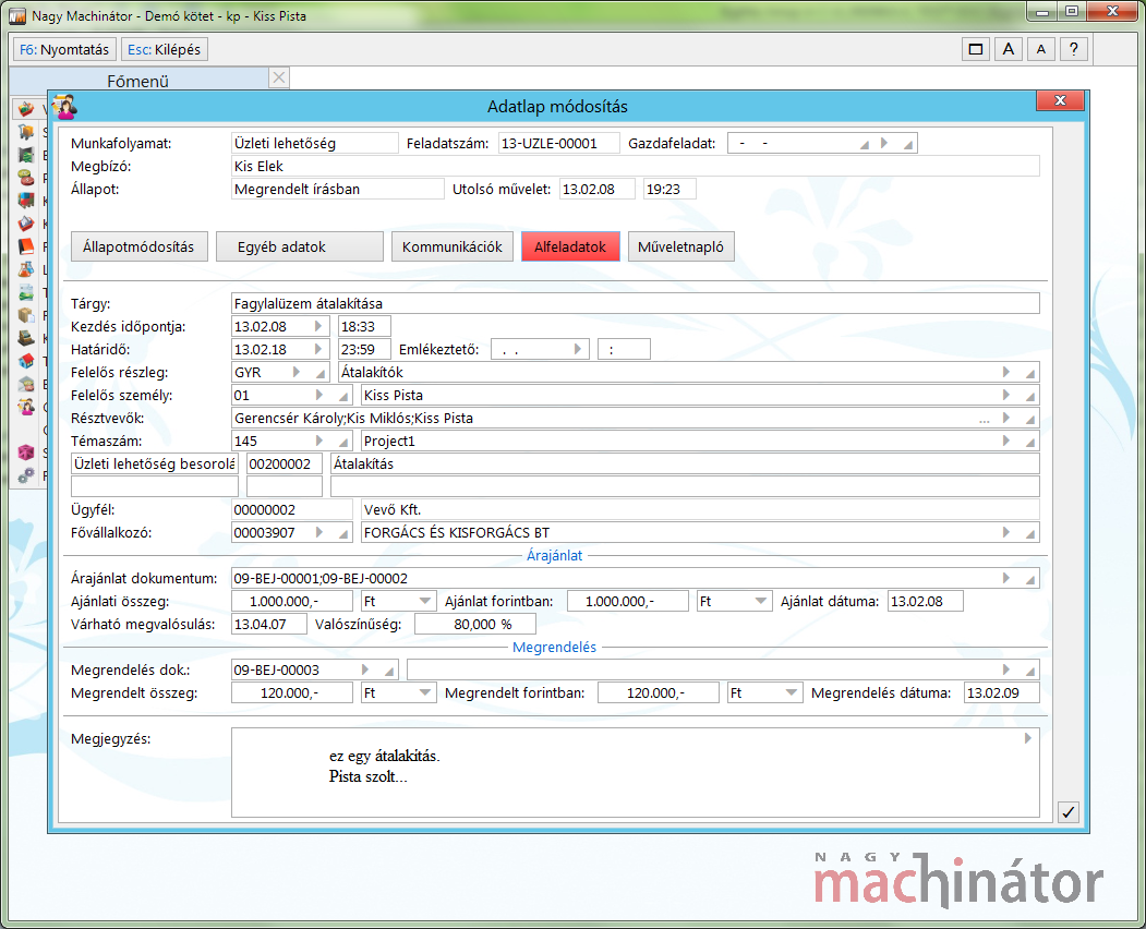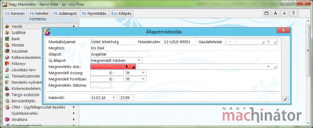 Megrendelés esetén szintén az állapotmódosítás gombot kell használni és Megrendelt .. állapotba kell tenni az üzleti lehetőséget.
