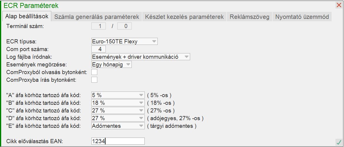A számlasorozat funkcióban a Pénztárgép: Van beállítás esetén jelenik meg a Pénztárgép paraméterek nyomógomb. -> További információ
