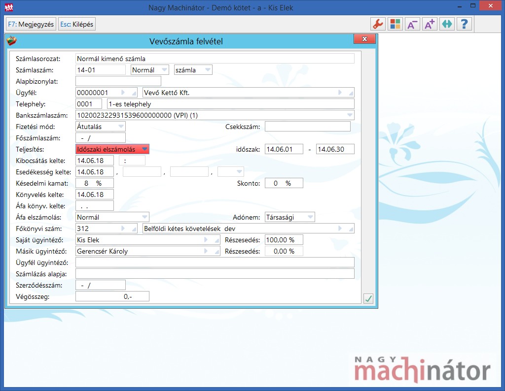 A számla fejlécében az Időszaki elszámolás értéket kell választani.