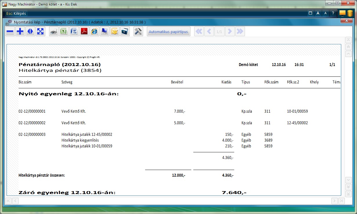 Ennek a pénztárnak az egyenlege fogja mutatni, hogy mekkora összeget várunk a Hitelkártya cégtől.