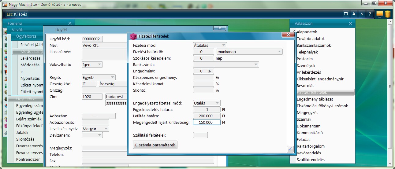 Amennyiben ügyfeleinknek tartozása keletkezik, a Nagy Machinátorban több lehetőség van a kintlévőség egyeztetésére és azok követelésére.