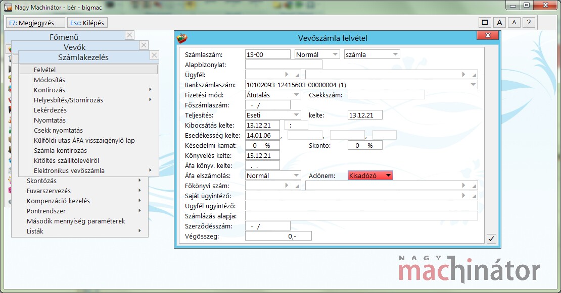 A Vevő- vagy Belföldi devizaszámla fejlécébe fogja a program a sajátcímben megadott adónem beállítás értékét megajánlani. Az ajánlás a számla kibocsátás dátumát figyeli.