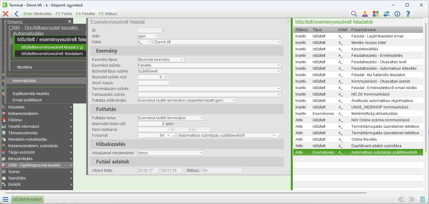 Az Időzített/és eseményvezérelt folyamatok funkció alkalmas arra, hogy a szállítólevél felvétel után elindítson egy szabadon definiált folyamatot.