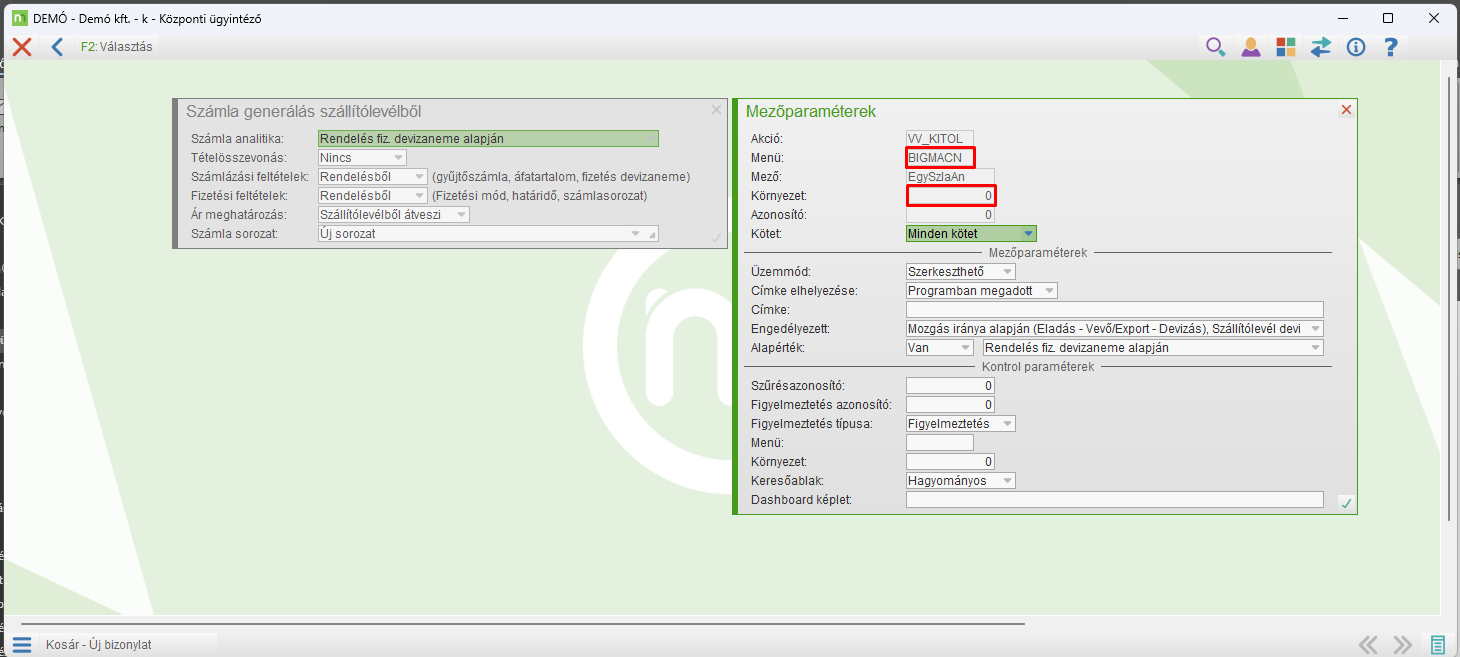Érdemes a mezőparaméterezés során a Menü+Környzetei változót megnézni.
