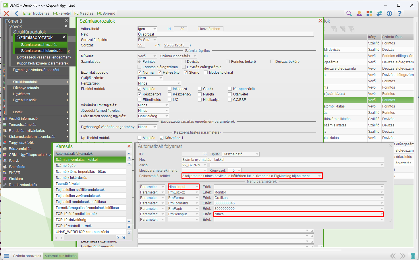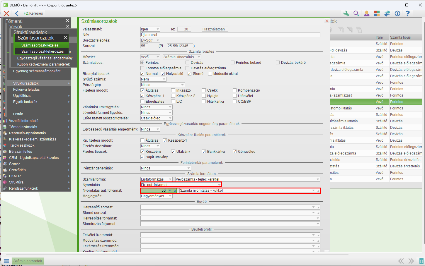 - A program a vevőrendelésben (vagy az ügyféltörzsben) meghatározott fizetési és számlázási feltételekkel automatikusan válasszon számlasorozatot. -> Számlázási rendszer