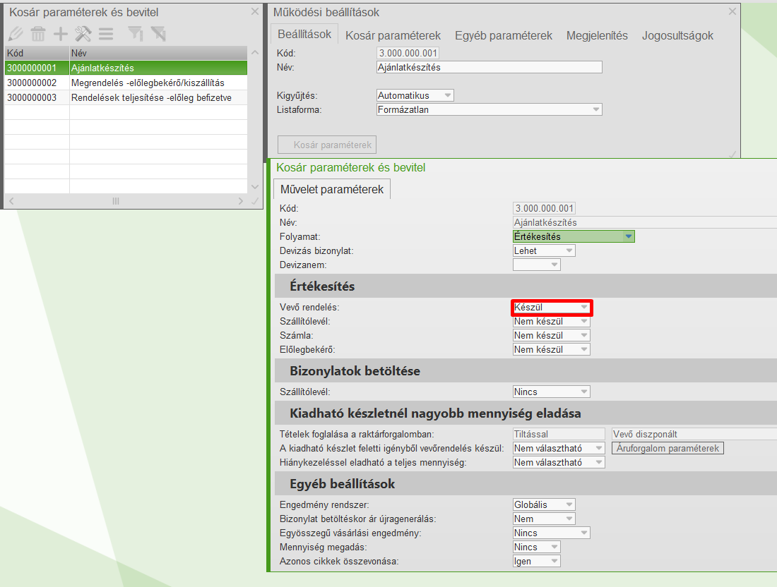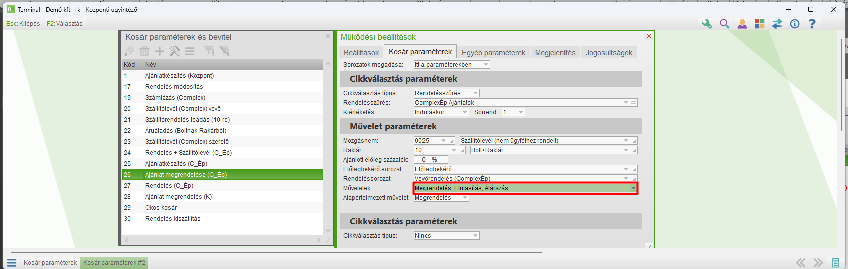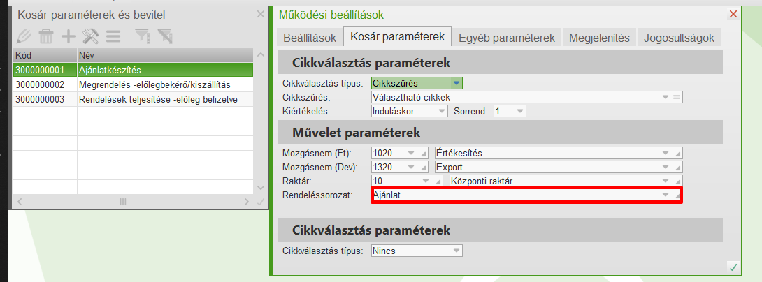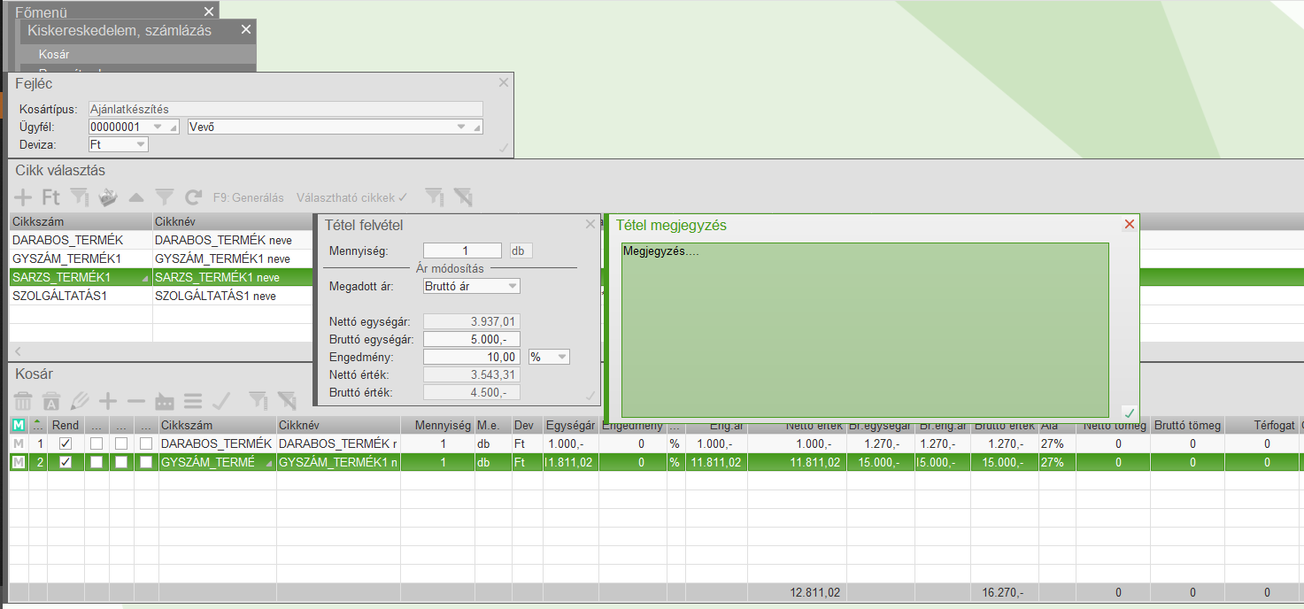 A Kosár funkcióban vevői árajánlatot is lehet készíteni.