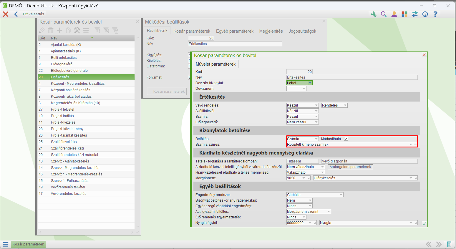 Kizárólag a kosár paraméterezésben megadott sorozatba tartozó rendelések, szállítóélevelek és számlák módosíthatók.