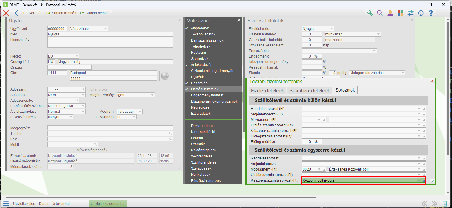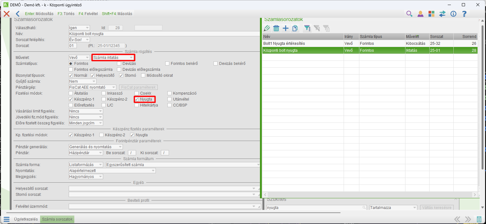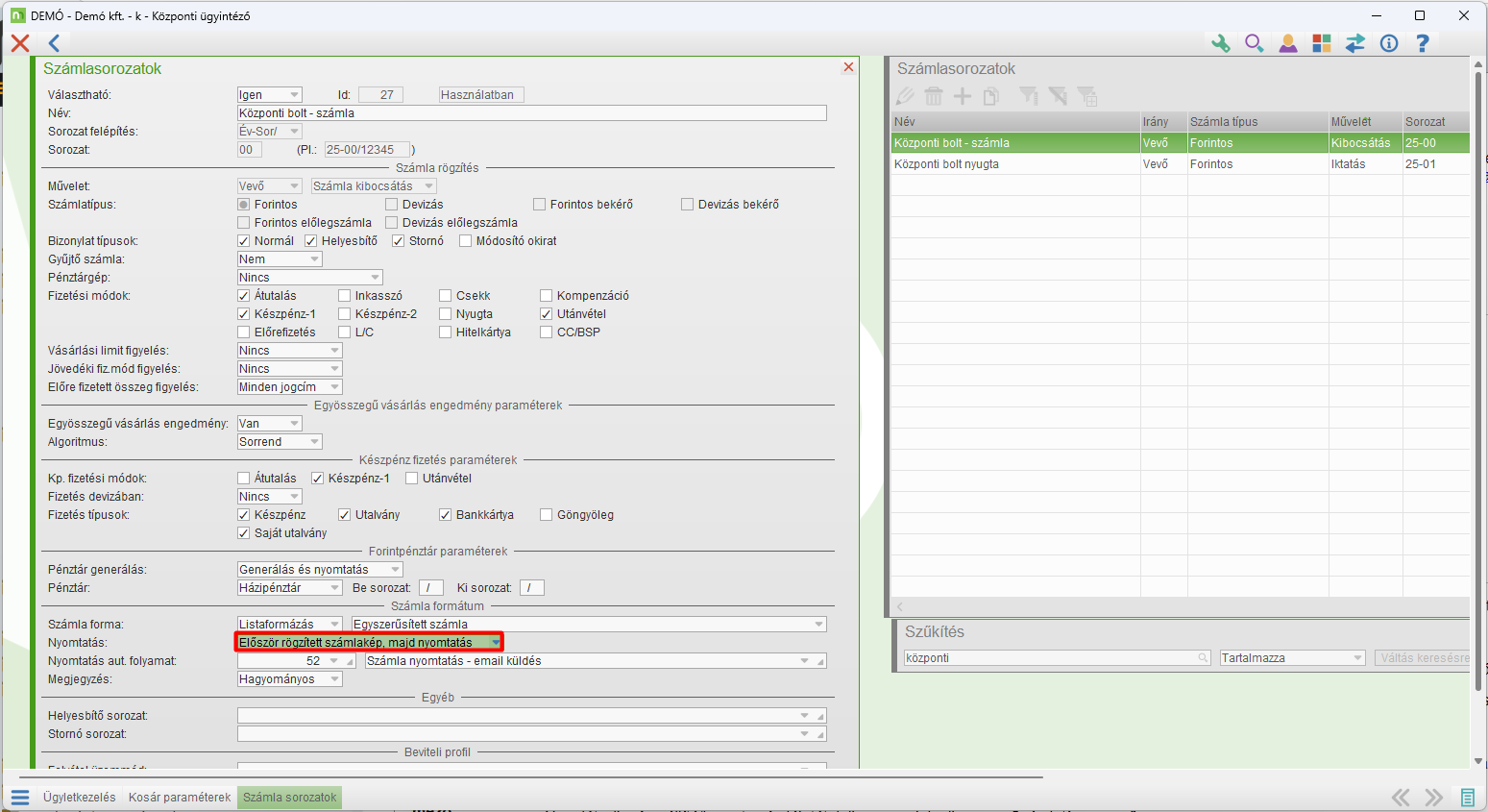 Az ügyféltörzsben megadott számlasorozattal és fizetési móddal fog elkészülni a bizonylat, amely nem lesz a NAV rendszerébe felküdve.