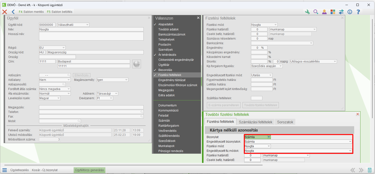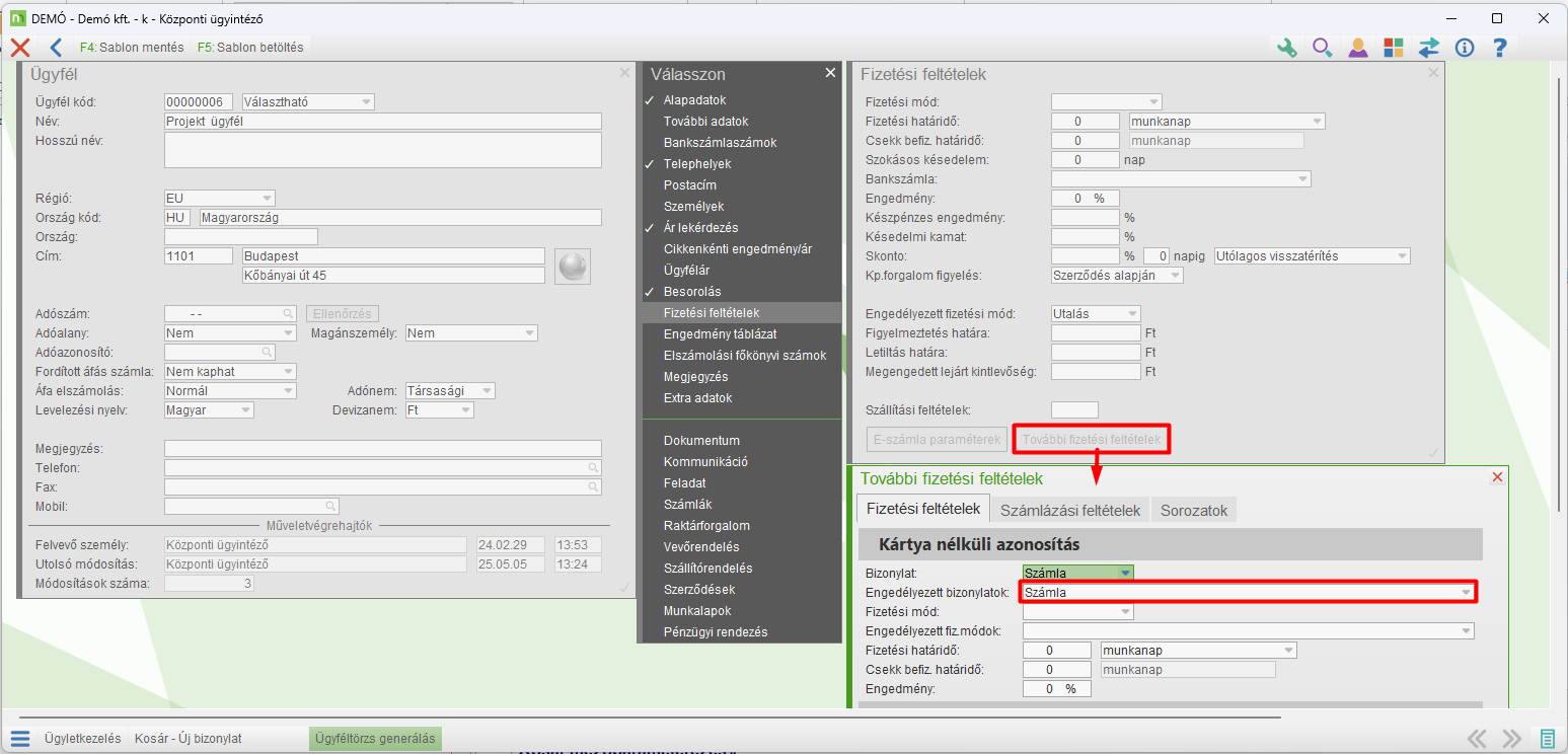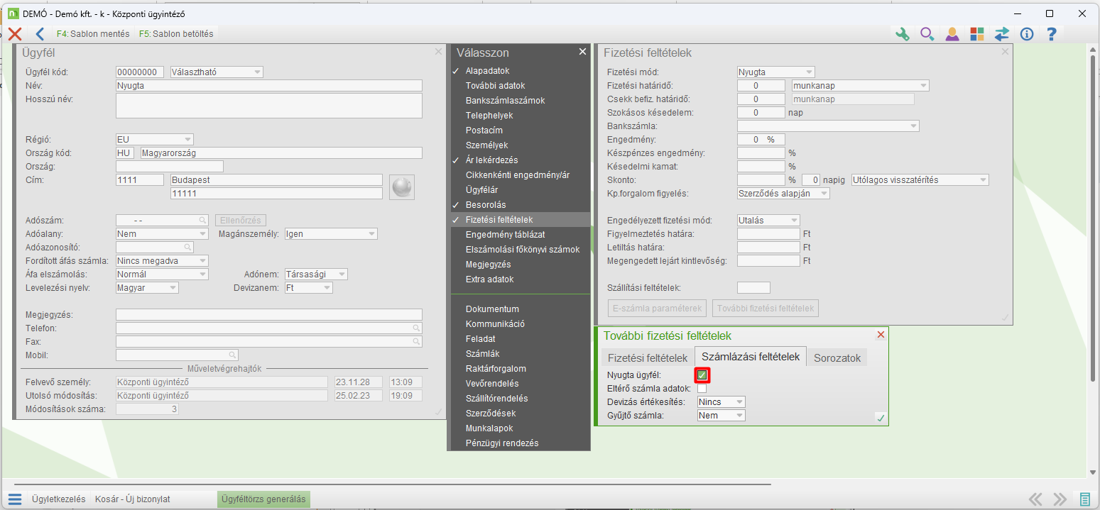 Az ügyféltörzsben megadott számlasorozattal és fizetési móddal fog elkészülni a bizonylat, amely nem lesz a NAV rendszerébe felküdve.