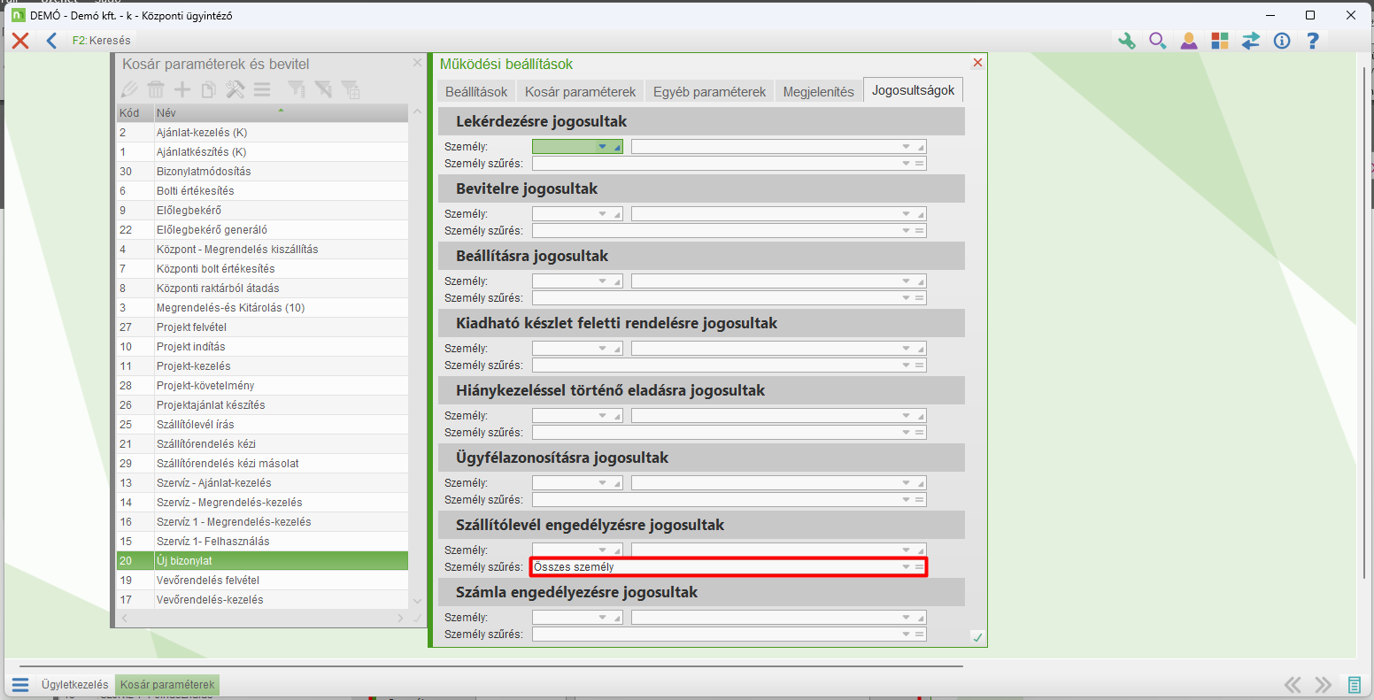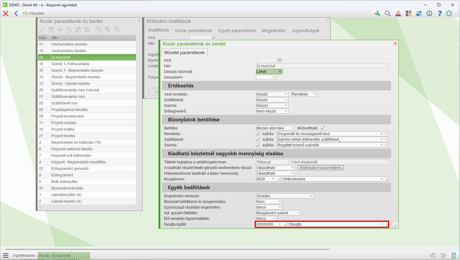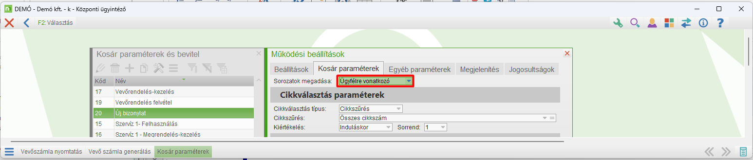 A Kosárparaméterekben megadható azoknak a bizonylatoknak a csoportja, amelyet az adott kosárban módosítani lehet.