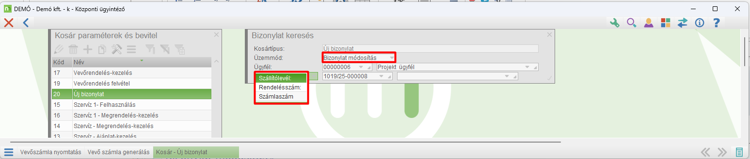 A Kosár funkció nem csak új bizonylatok felvételére, hanem meglévő bizonylatok módosítására is alkalmas.