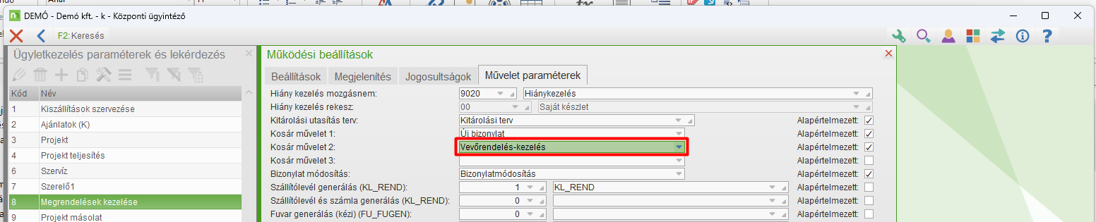 Többek között itt lehet szállítólevelet (Kiszállítás művelet), vagy szállítólevelet és számlát (Kiszállítás, számlázás művelet) is kiállítani a rendelés alapján.