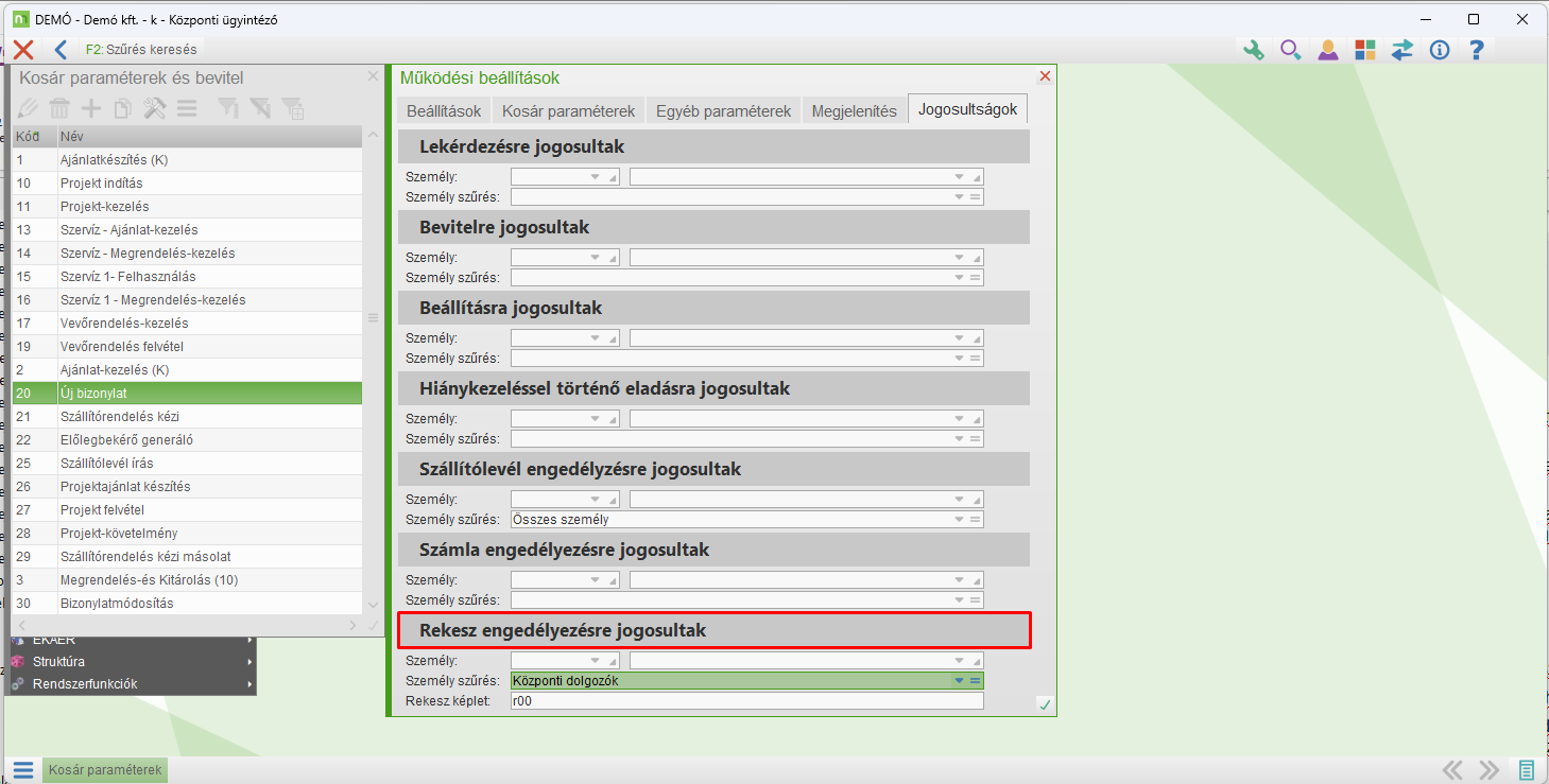 Amennyiben az eladandó áru az alábbi képen látható rekesz képletnek megfelelő helyről kerül kiírásra, a program jelszót fog kérni és csak akkor engedi az értékesítést, ha jelszót megadó felhasználó tagja a képen látható helyen megadott személycsoportnak.