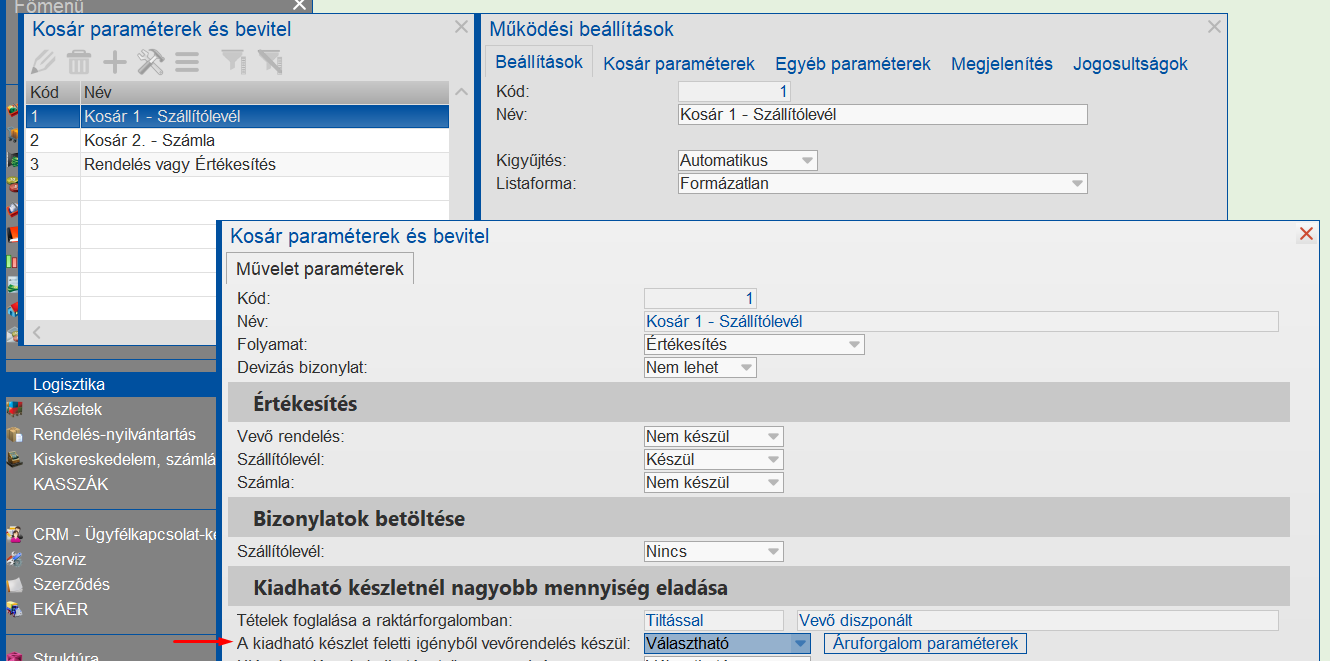 Ezzel lehetővé válik, hogy a funkcióból történő kilépés nélkül lehessen egyszerre szállítólevelet és rendelést rögzíteni.