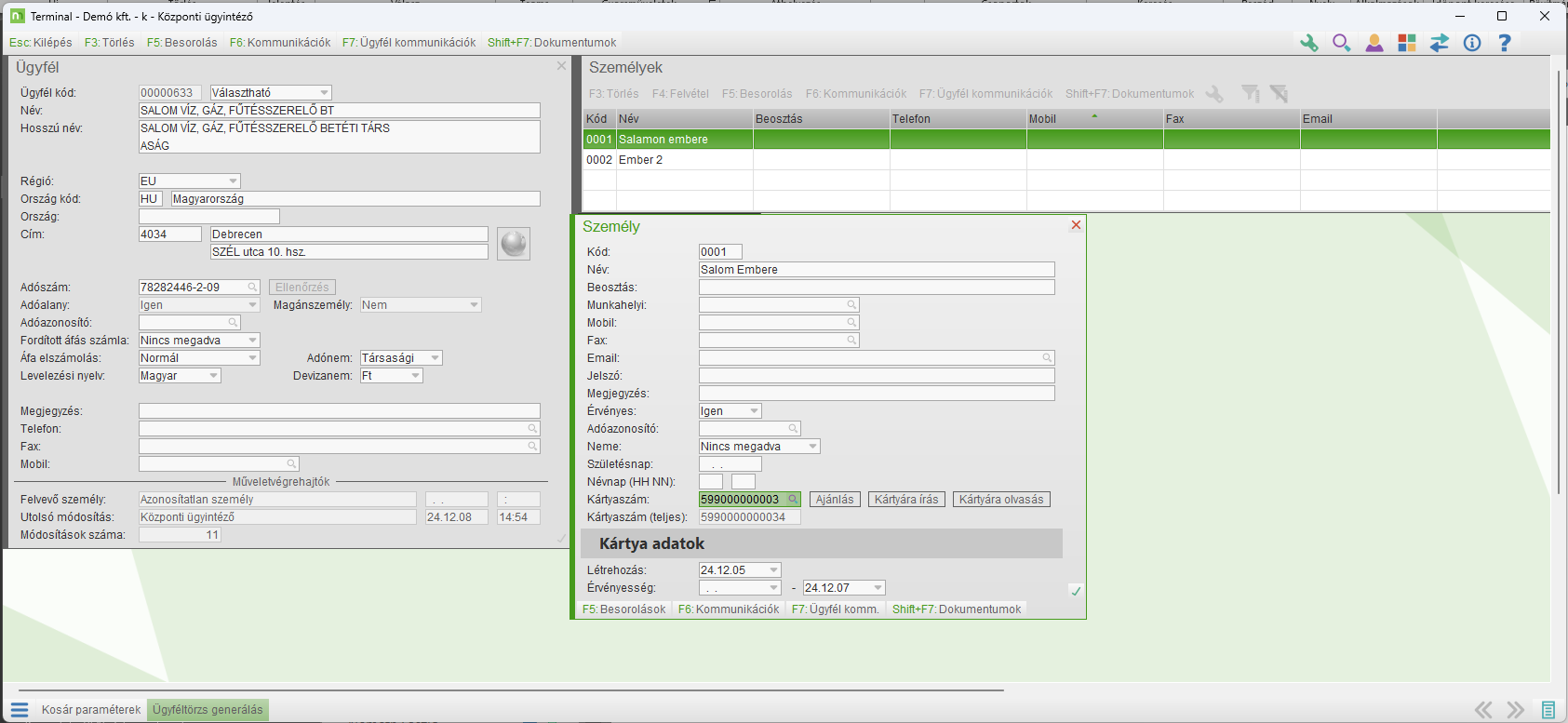 Az ügyféltörzsben az egyes személyeknek lehet NFC kártyát adni.