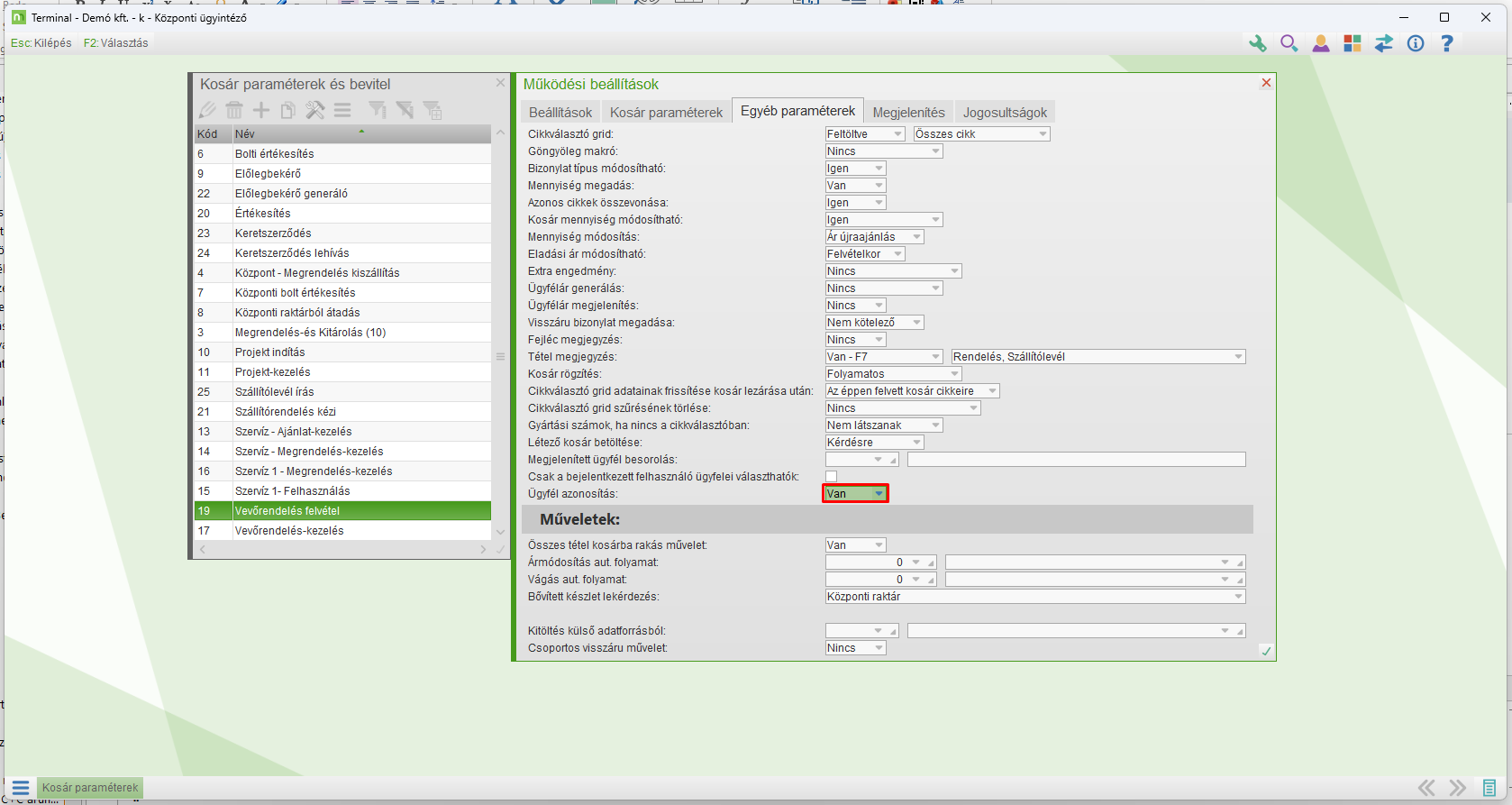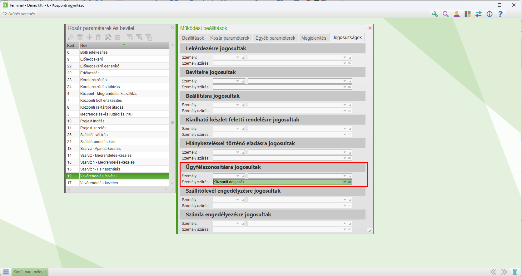 Ehhez a kosárban aktiválni kell azoknak a felhasználóknak a körét, akik az ügyfelet azonosíthatják.