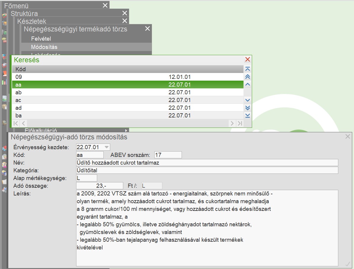 A Népegészségügyi termékadó kezelése a következő módon van végrehajtva a programban.