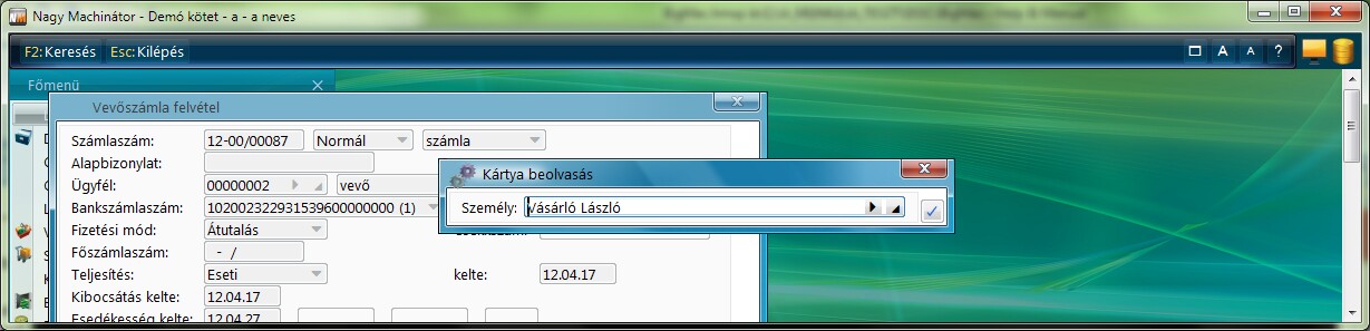 Amennyiben a számla készítés már a személy vonalkódos azonosításával megtörtént, itt már csak jóvá kell hagyni a személyt.