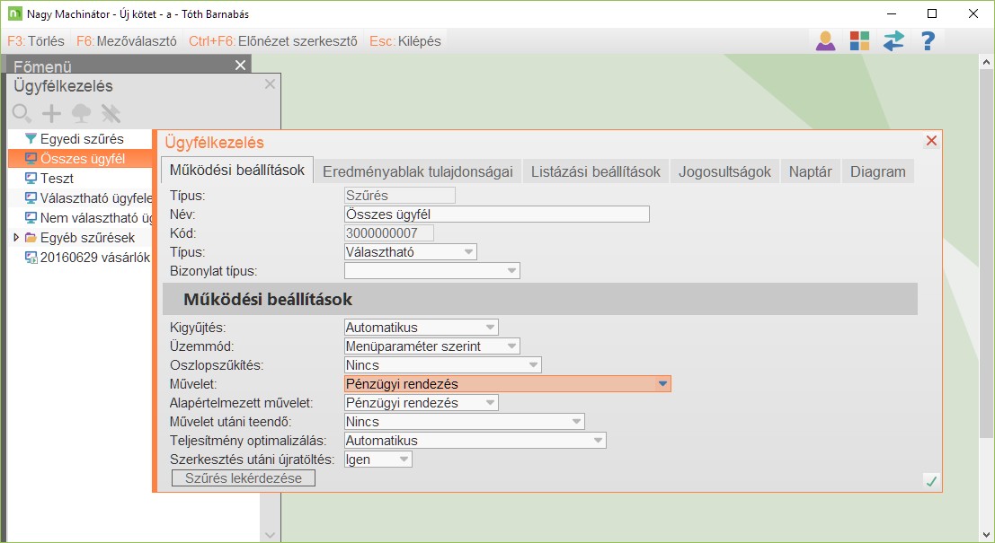 Továbbá a funkció meghatározza, hogy milyen pénzügyi rendező műveleteket lehet végrehajtani az ügyféllel.