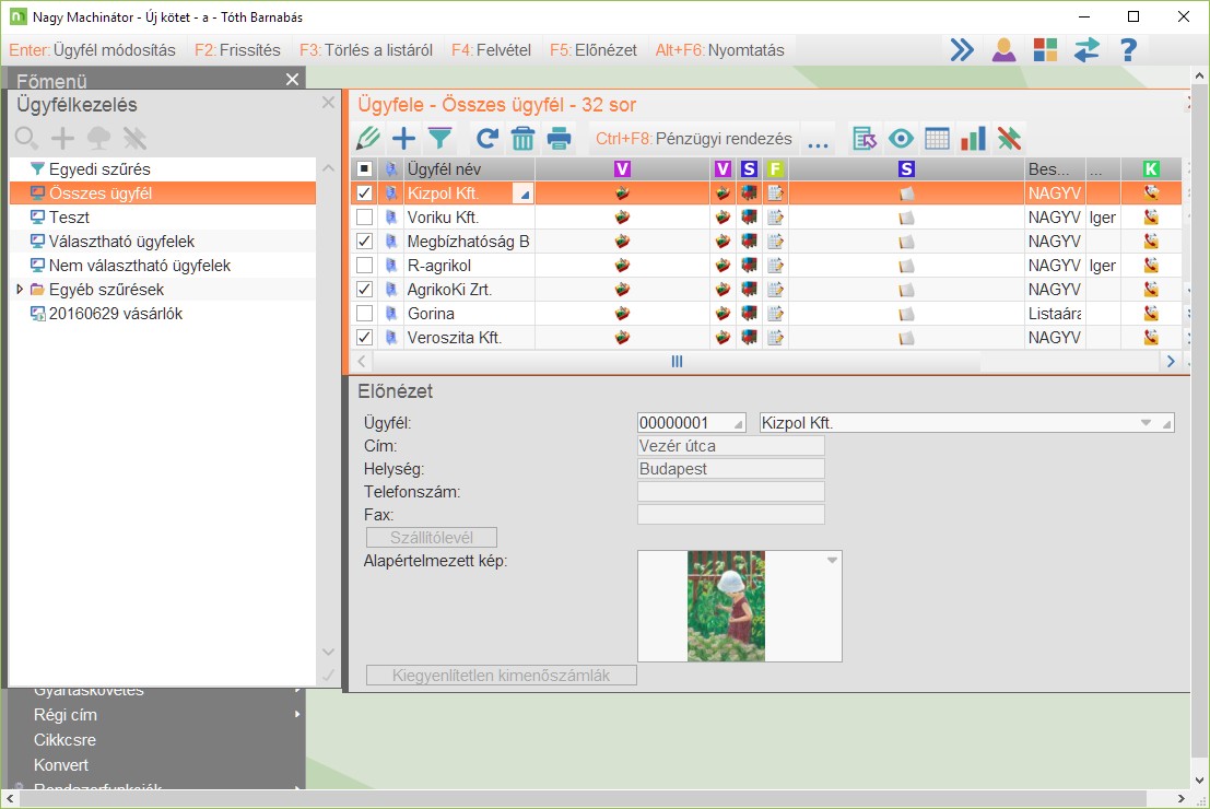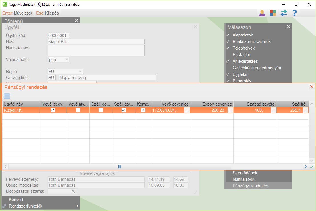 Az ügyfél kiválasztása után a meghatározott műveleteken egyesével végig haladva végre is lehet hajtani azokat.
