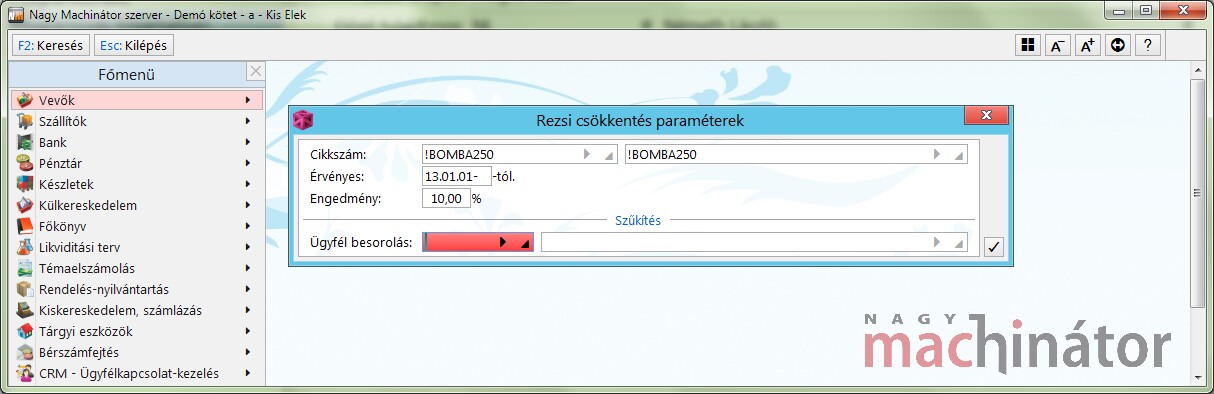 Lehetőség van arra is a funkcióban, hogy csak bizonyos vevők esetén legyen kiírva a számlára a rezsicsökkentés szöveg. Ehhez egy ügyfélbesorolásba kell sorolni az ügyfeleket és itt lehetőség van megadni a besorolás kódját.