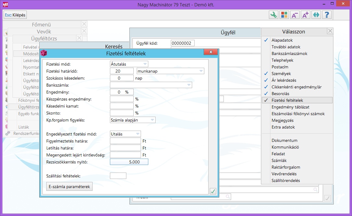 Lehetőségünk van az Ügyféltörzs Fizetési feltételek almenüpontban az ügyfeleink eddig megtakarított rezsiösszegeit felvenni.