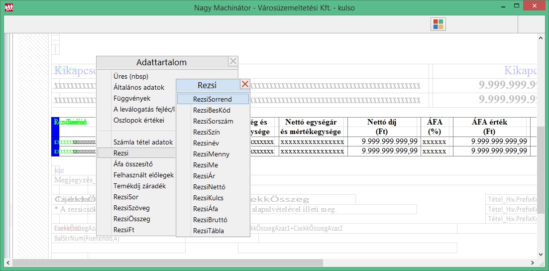 Aki egyedi előre nyomtatott számlaformátumot használ a RezsiMargó paraméterrel tudja szabályozni, hogy hova kerüljön a rezsicsökkentés szöveg a számlán (Ez legyen kisebb, mint az AlsóMargó paraméter értéke. Ajánlott érték AlsóMargó- 6).